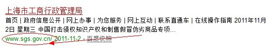 第二步,看到搜索結果中點擊“上海市工商行政管理局”的網站(www.sgs.gov.cn),如圖