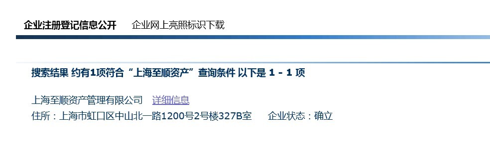 第五步,看到查詢結果中出現“上海至資產管理有限公司”后,點擊旁邊的“詳細信息”。需要提醒的是:有些時候您會發現您查詢的結果中沒有您要找的公司,這是因為同樣名稱的公司很多,第一頁顯示不全,分成幾頁了,您需要往后翻頁查找(如下圖2)。當然,如果直到最后頁都找不到該公司,那只能說明這家公司是虛假的,沒有正式的工商注冊。參見下圖: